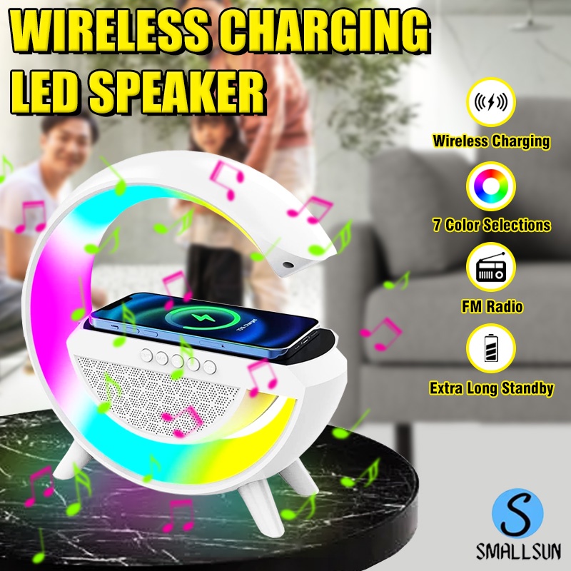 SPEAKER BLUETOOTH BEST SELLER LED AMBIENT LIGHT WIRELESS CHARGER LAMPU MEJA BT2301 MULTIFUNGSI