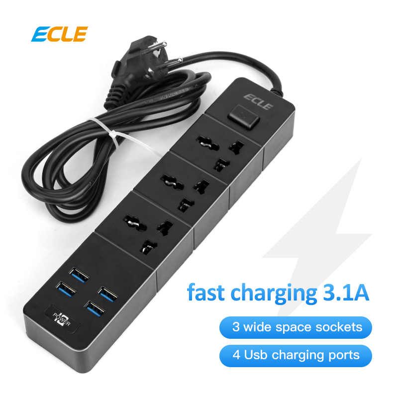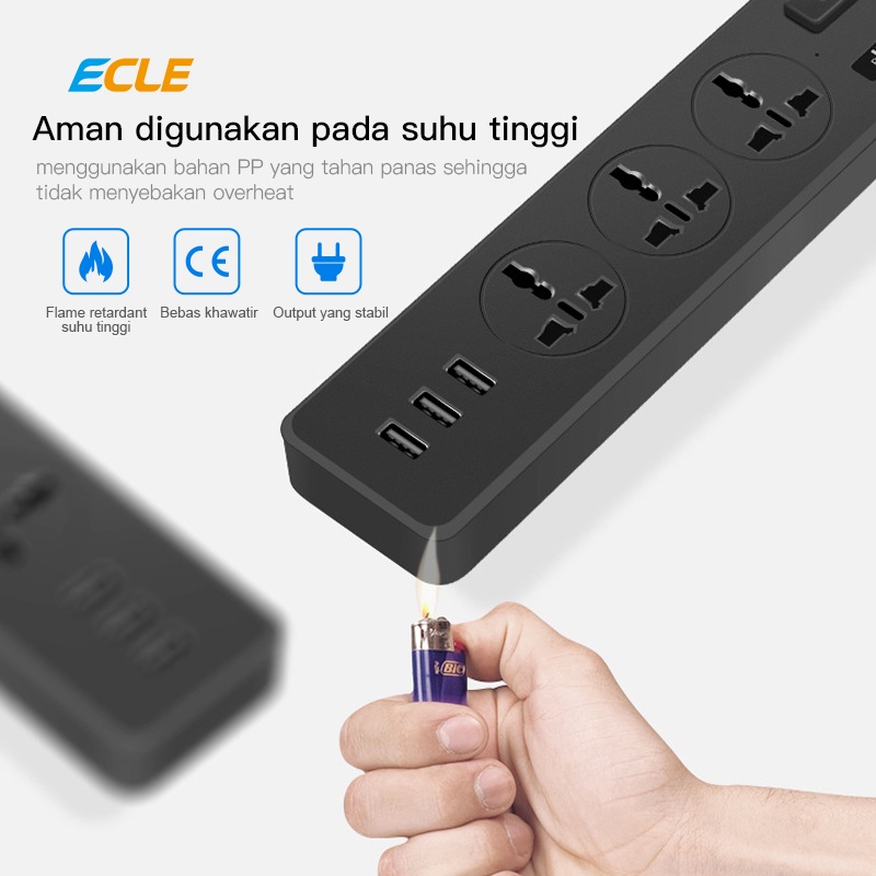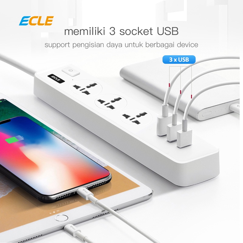 ECLE POWER STRIP COLOKAN LISTRIK STOP KONTAK 4 USB PORT +3 LUBANG SOCKET +1 TOMBOL POWER