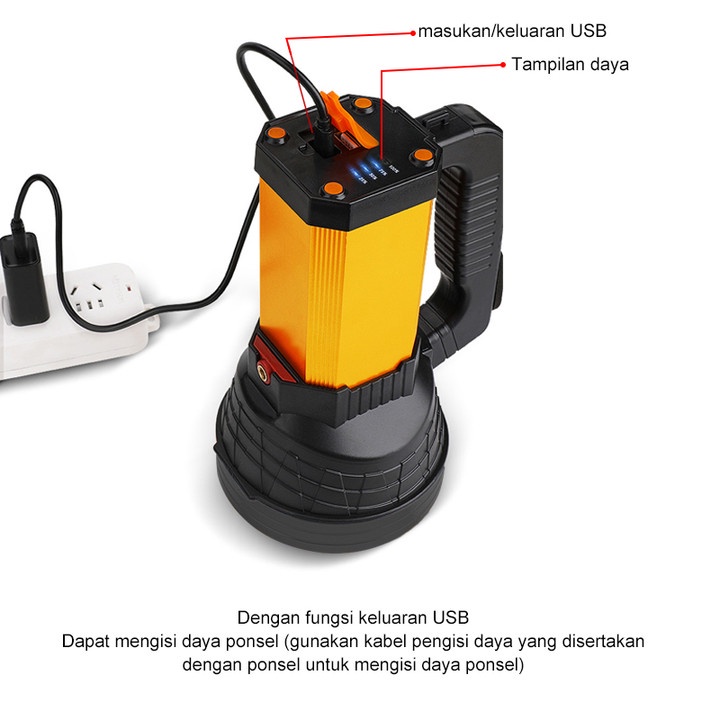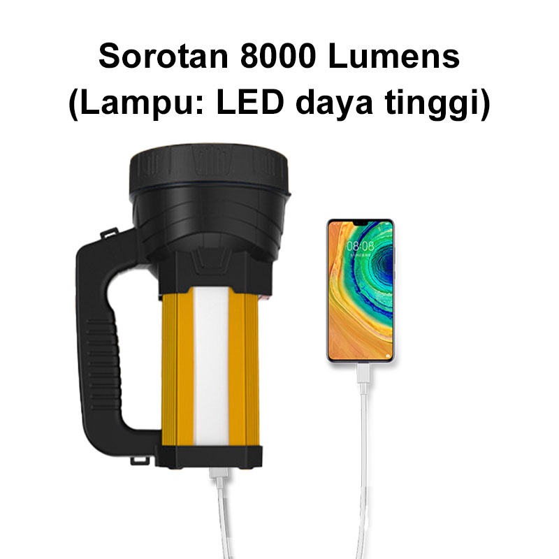 SENTER LED SUPER TERANG JARAK JAUH 3 MODE SENTER CAMPING JUMBO MULTIFUNGSI 48W IPX6 WATERPROOF