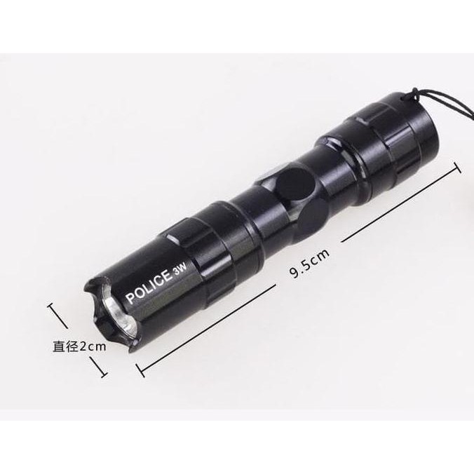 SENTER MINI POLISI SWAT LED FLASHLIGHT ANTI AIR 3W - SENTER PENERANGAN JARAK JAUH