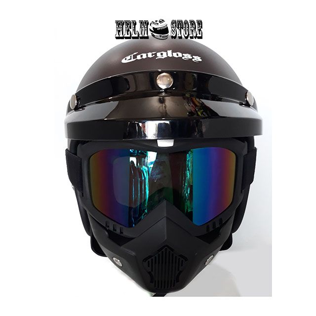 HELM CARGLOSS CFM CARGLOSS RETRO SOLID COKLAT DOFF + GOGGLE 'MASK HELMET BOGO RETRO ORIGINAL