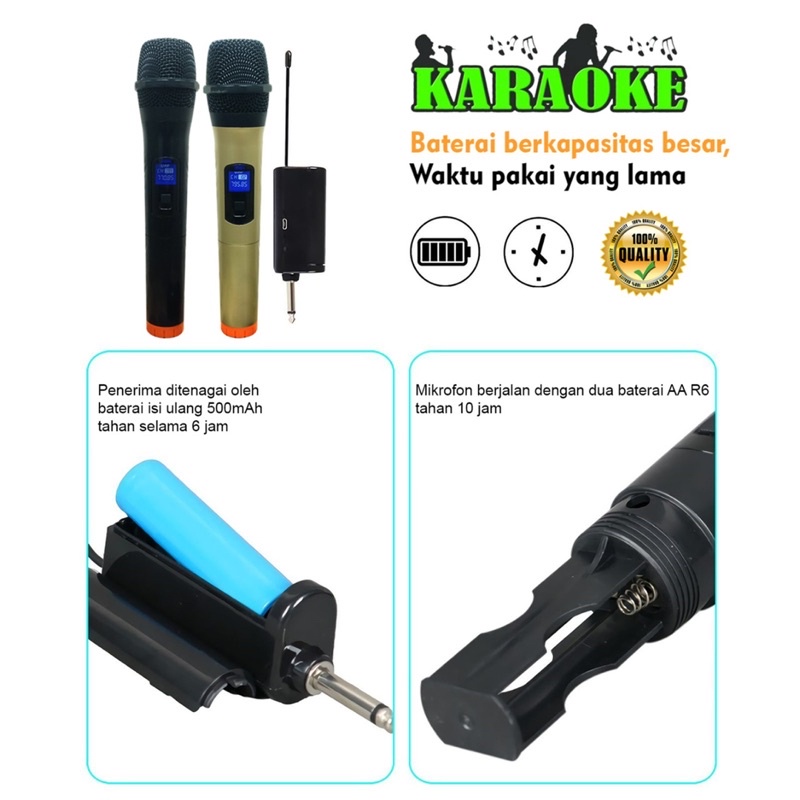 MIC WIRELES MICROPHONE BLUETOOTH DENGAN RECEIVER SYSTEM 2MIC WIRELES