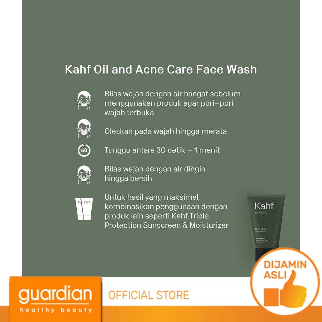 KAHF OIL AND ACNE CARE FACE WASH 100ML / SABUN PEMBERSIH WAJAH PRIA UNTUK JERAWAT