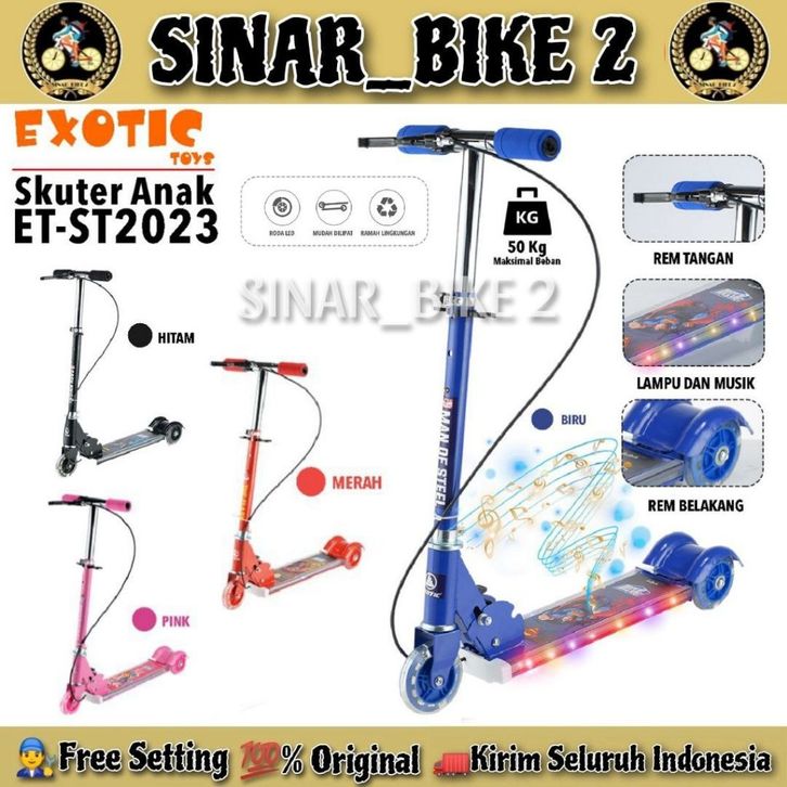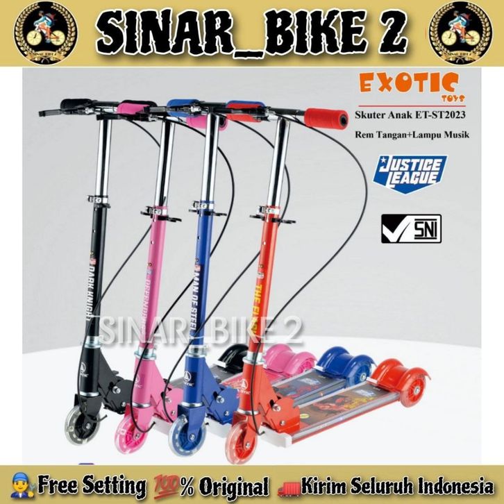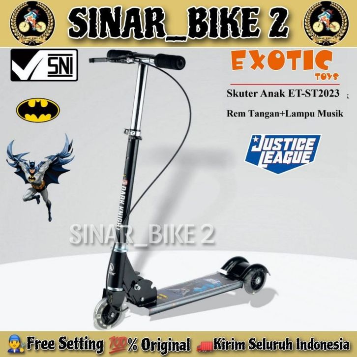 Scooter Anak Roda 3 EXOTIC ET ST 2023 JUSTICE LEAGUE Rem Tangan Lampu Musik Skuter Manual