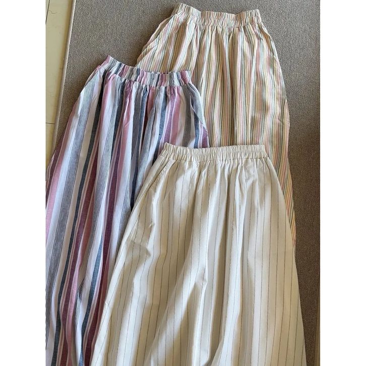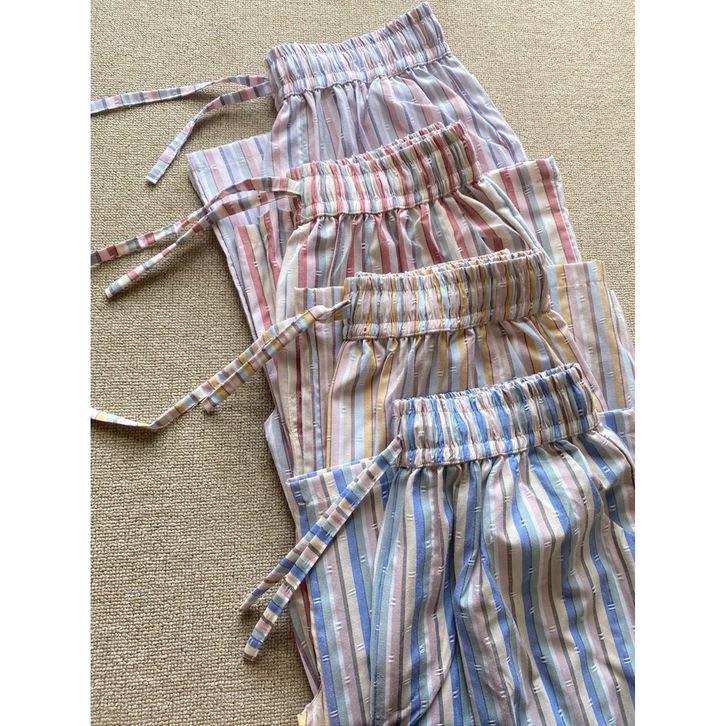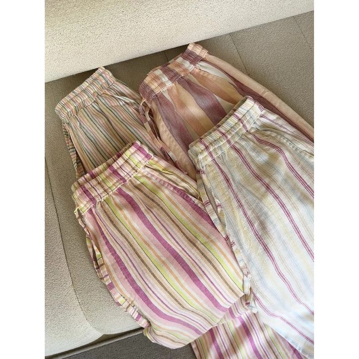 celana linen wanita motif garis loose baggy pants kulot kantor santai boho style stripes korea look