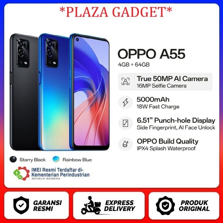 OPPO A55 4G 4GB+64GB CHIPSET CPU: MediaTek Helio G35 5000 mAh/19.35 Wh (Typical value)