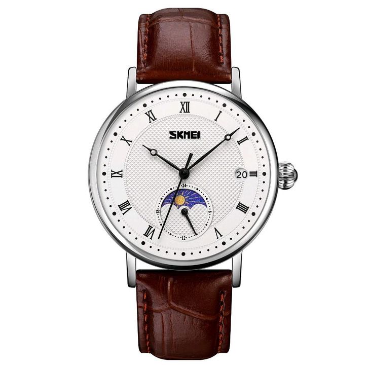Jam Tangan Pria SKMEI 9308 ORIGINAL Watches Moon Phase Leather Strap Anti air