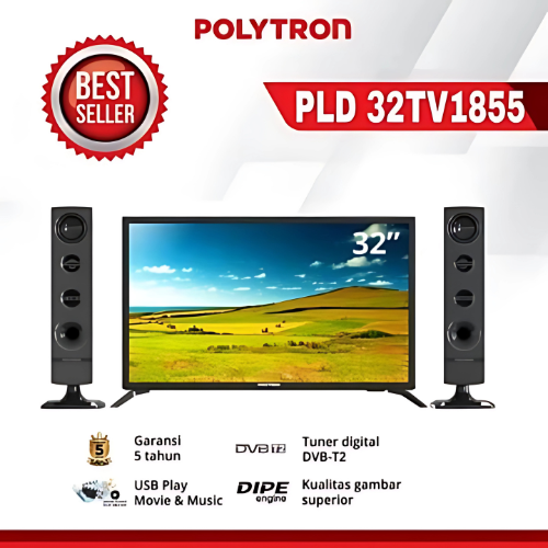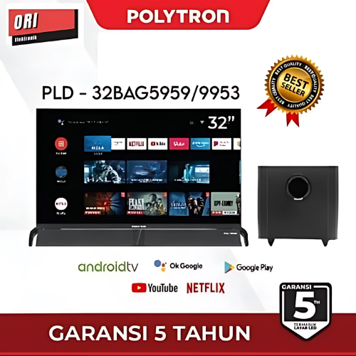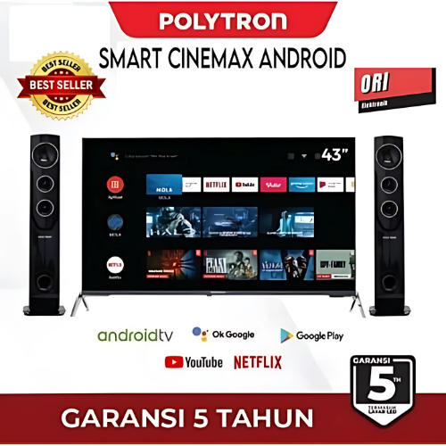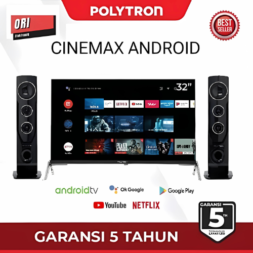 TV POLYTRON SMART DIGITAL LED 43 32 24 INCH PLD-32V1853 TAG5959 24V1853 TELEVISI CINEMAX SOUNDBAR SPEAKER TOWER ANDROID
