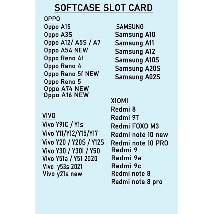 [1527] softcase slotcard fashion case op po vi vo realme remdi infinix samsung iphone (type tambahankan dicatatan) Gra