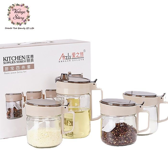 BOTOL MINYAK GORENG TEMPAT BUMBU GULA GARAM BOTOL MINYAK KACA MULTIFUNGSI 4 IN 1 PERALATAN DAPUR BEST PRODUCT VINTAGE