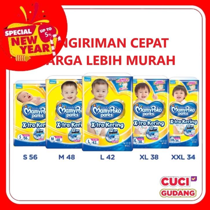 MAMYPOKO PANTS XTRA KERING S56 M48 L42 XL38 XXL34 POPOK BAYI SEKALI PAKAI