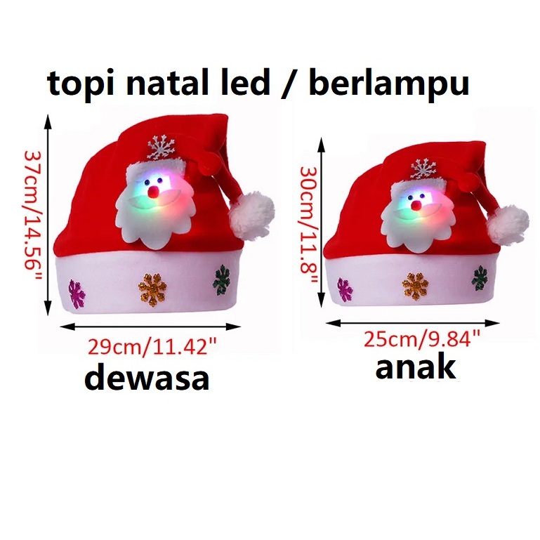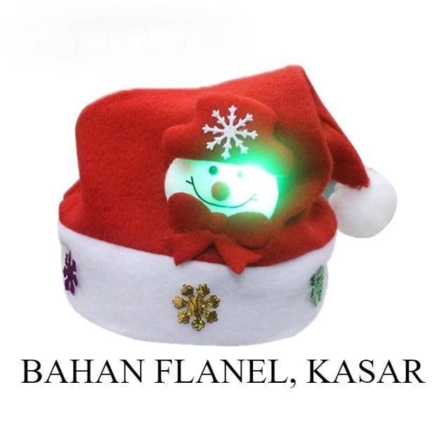 TOPI NATAL SINTERKLAS LED BERLAMPU SANTA POLOS HIASAN BERMOTIF SANTA RUSA SNOWMAN MERRY CHRISTMAS HAT