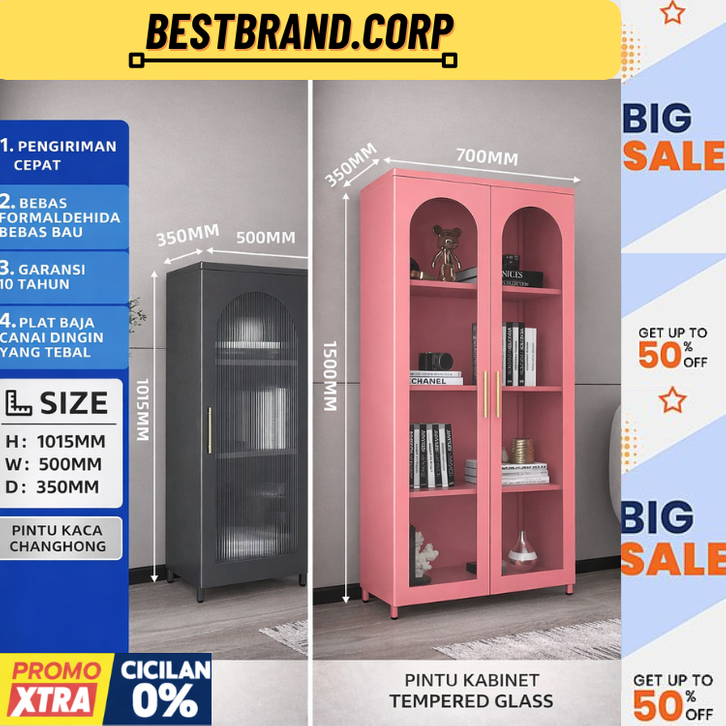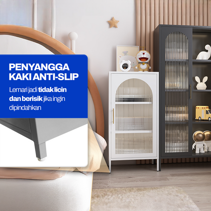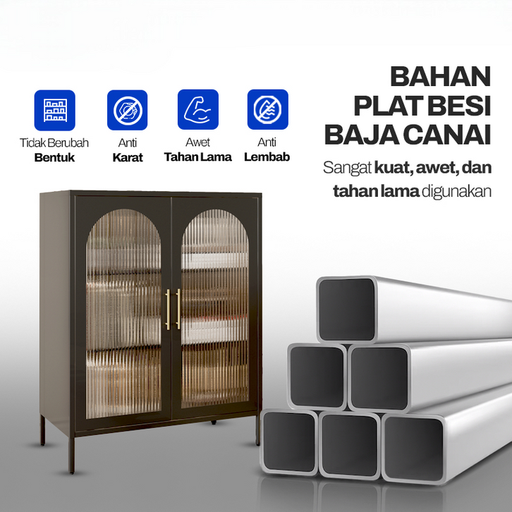 [Mall] Lemari Kabinet Besi dengan Pintu Kaca Minimalis Modern, Rak Display Lemari Hias Ruang Tamu Lemari Sudut