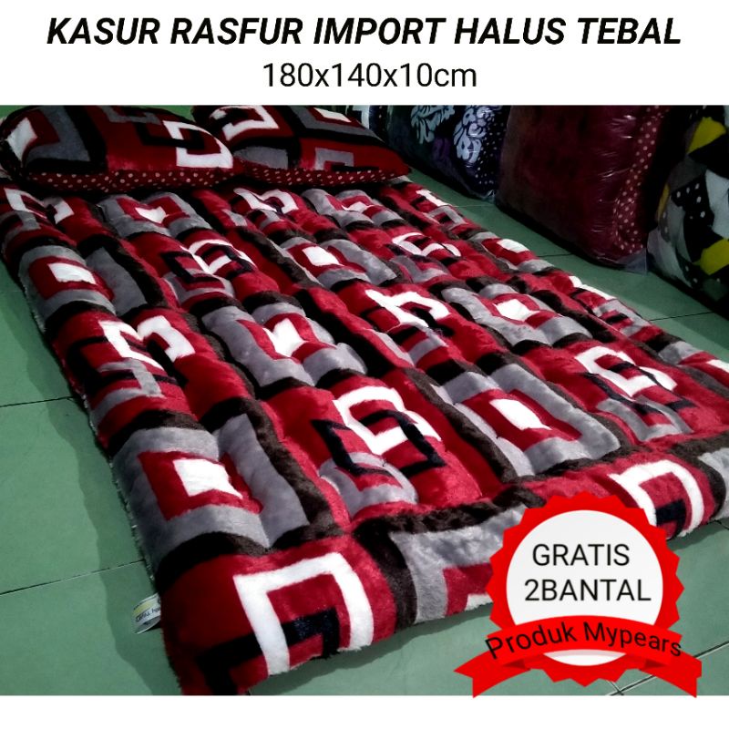 SUPER QUALITY Kasur Lantai BULU MOTIF KOTAK 180X140X10cm FREE 2bantal