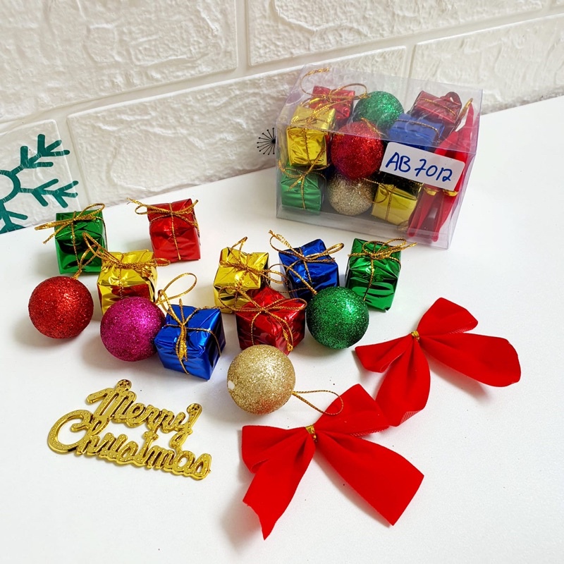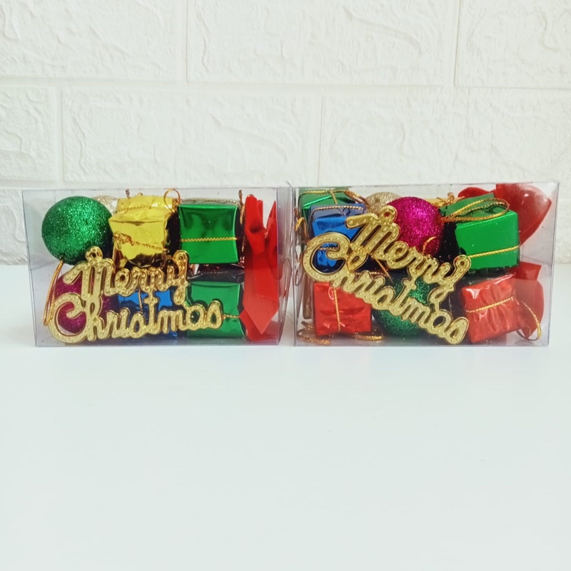 SET BOX MIX HIASAN DEKORASI POHON NATAL CHRISTMAS PINUS PERMEN SANTA MURAH
