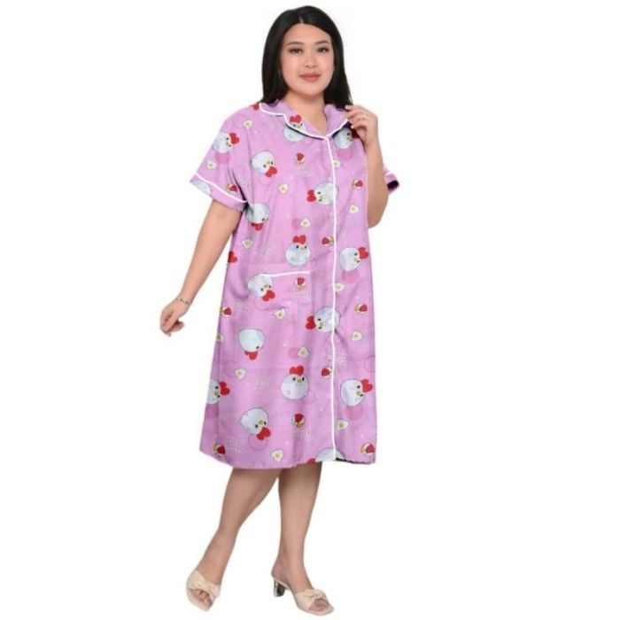 Baju Daster Wanita Jumbo Katun Jepang Lengan Pendek Ld 120 - Jum Black Cat
