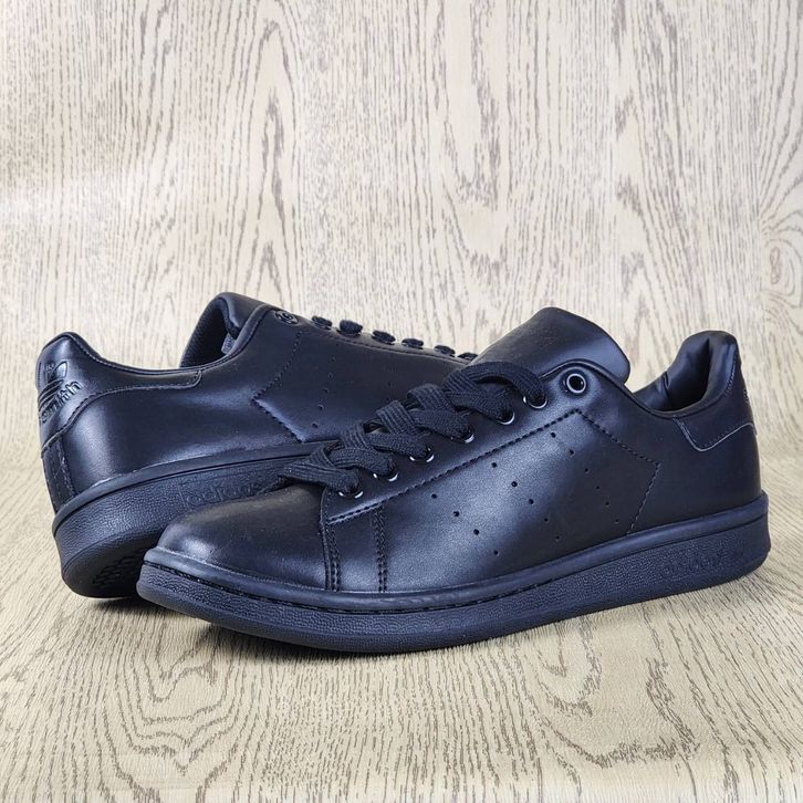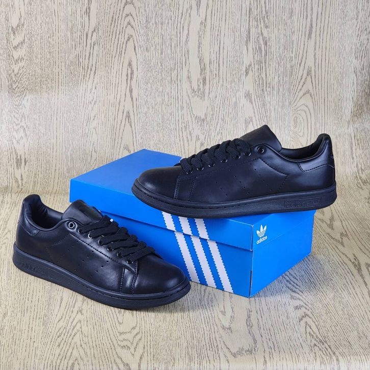SEPATU ADIDAS STAN SMITH TRIPLE BLACK ORIGINAL BNIB FULL TAG BARCODE BAHAN LEATHER KULIT