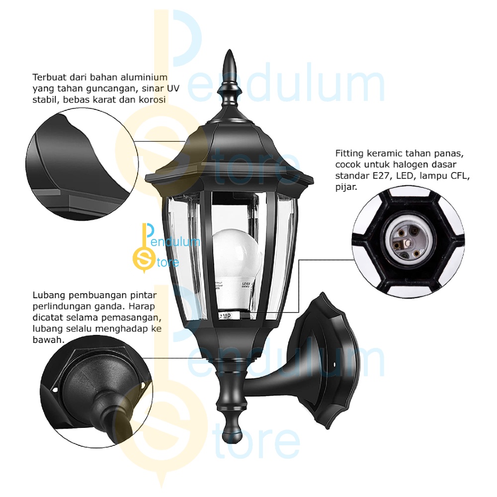 Emico Lampu Dinding Lentera Vintage Classic Outdoor Lampu Hias Teras Taman Waterproof Anti Karat