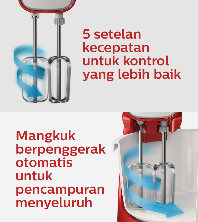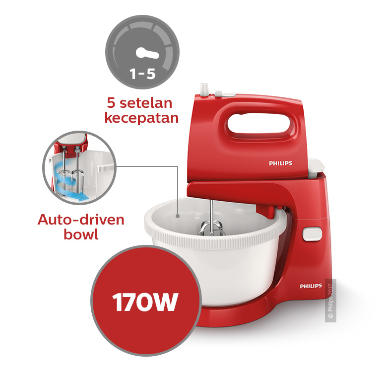 PHILIPS ORI Stand Mixer HR1559/10 - 170W, Stand Mixer with Bowl, Pengocok Adonan Kue Roti, Red, Merah Mikser Otomatis
