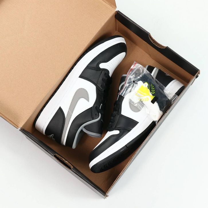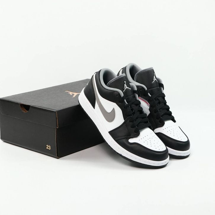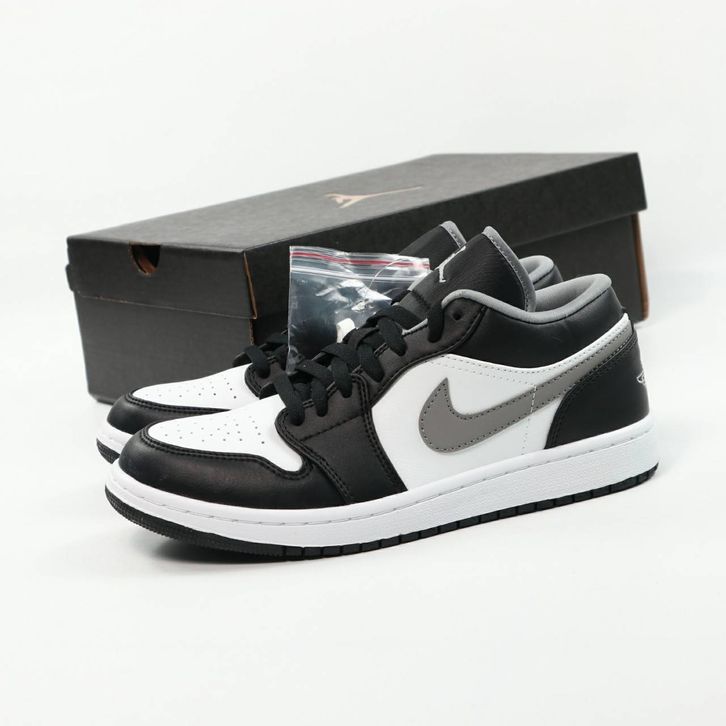 SEPATU KASSUAL PRIA NIKE AIR JORDAN 1 LOW BLACK MEDIUM GREY WHITE ORIGINAL BNIB FULL TAG BARCODE BAHAN LEATHER KULIT