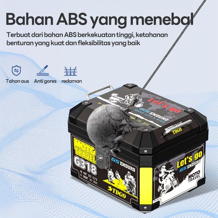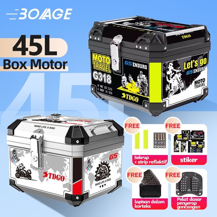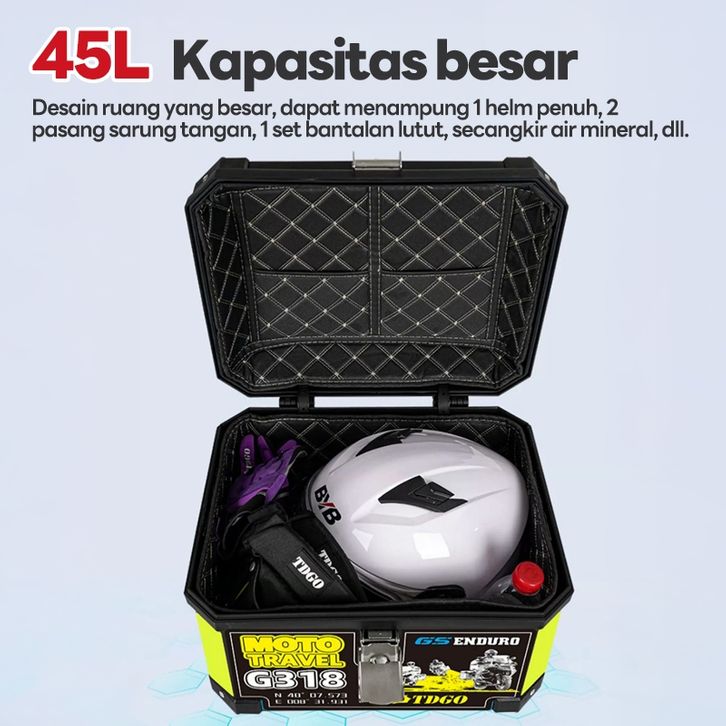 (Penawaran panas!!!)45L Kapasitas Besar, Tahan air, Box Belakang Motor/box motor Kotak penyimpanan MOTOR MURAH ABS belak
