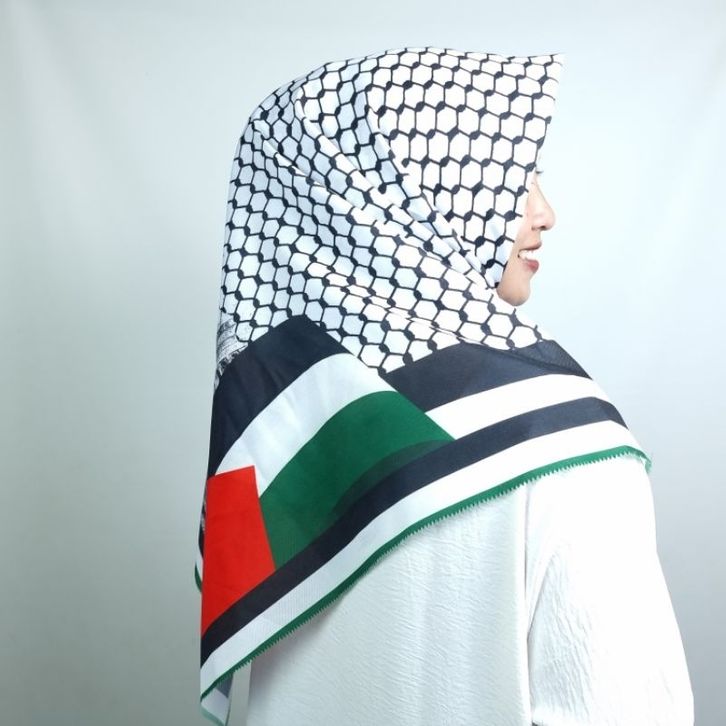 HIJAB JILBAB KERUDUNG SEGIEMPAT VOAL MOTIF PALESTINA