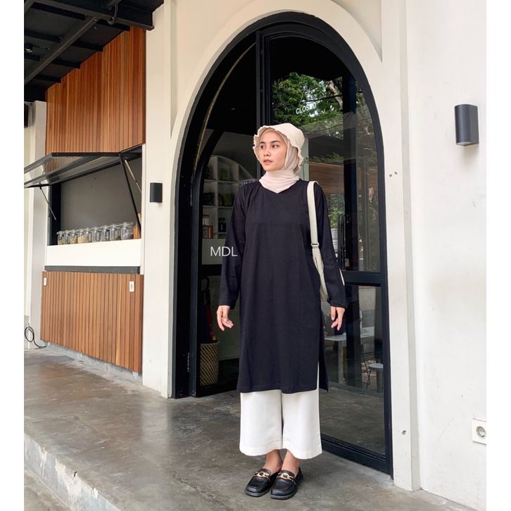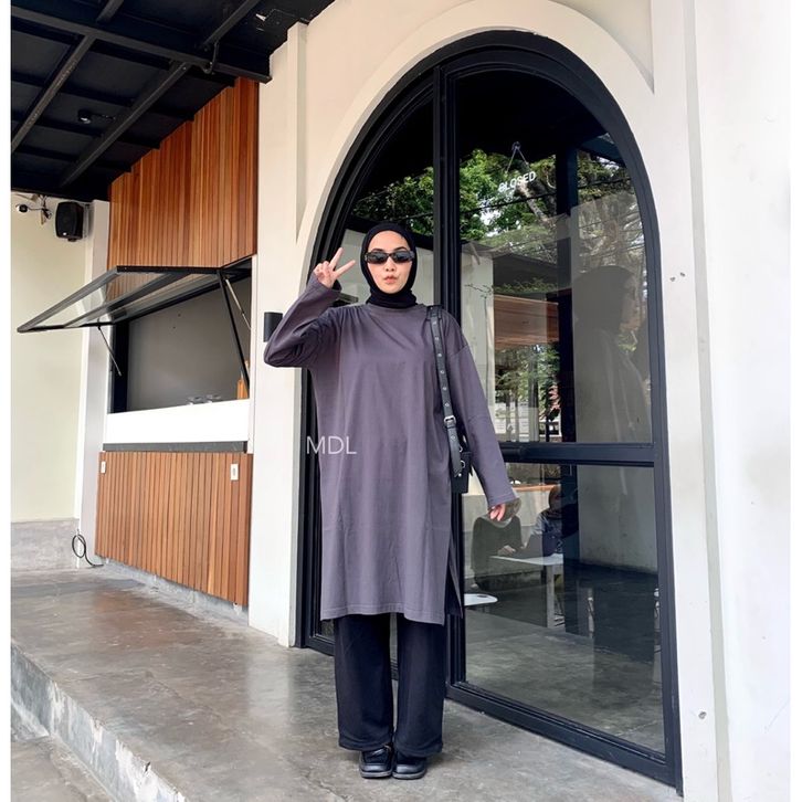 NUNA SLIT DRESS KAOS COTTON COMBED JUMBO TUNIK OVERSIZED POLOS LENGAN PANJANG MURAH