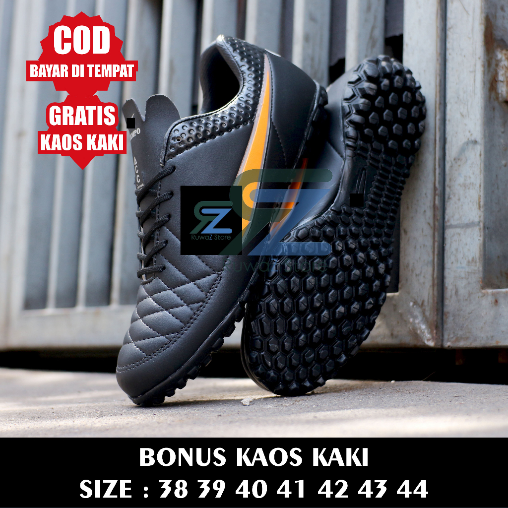 SEPATU FUTSAL MINI SOCCER PRIA TIEMPO HITAM SOL KARET MENTAH BUNYI CITCIT MURAH SEPATU OLAHRAGA TERBARU