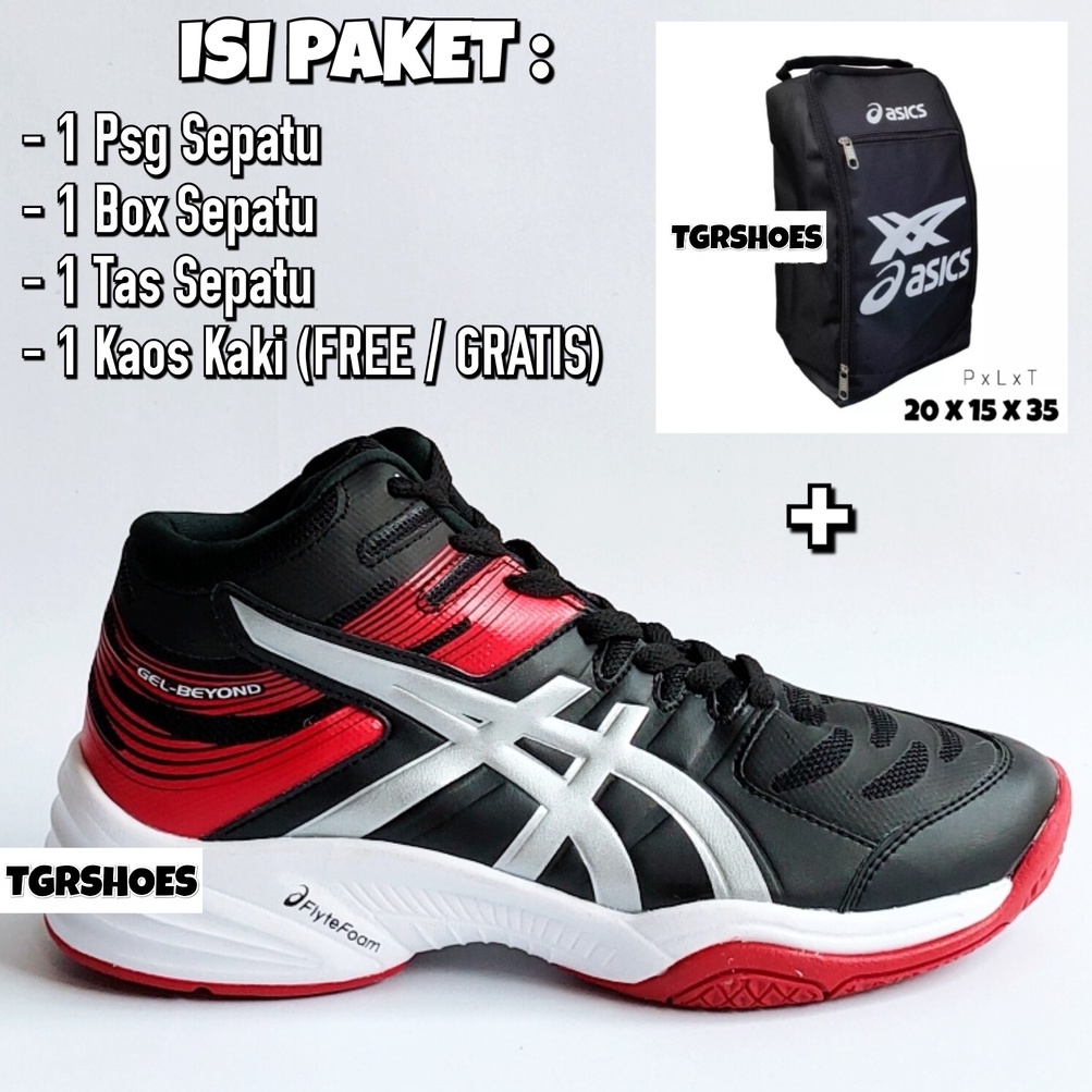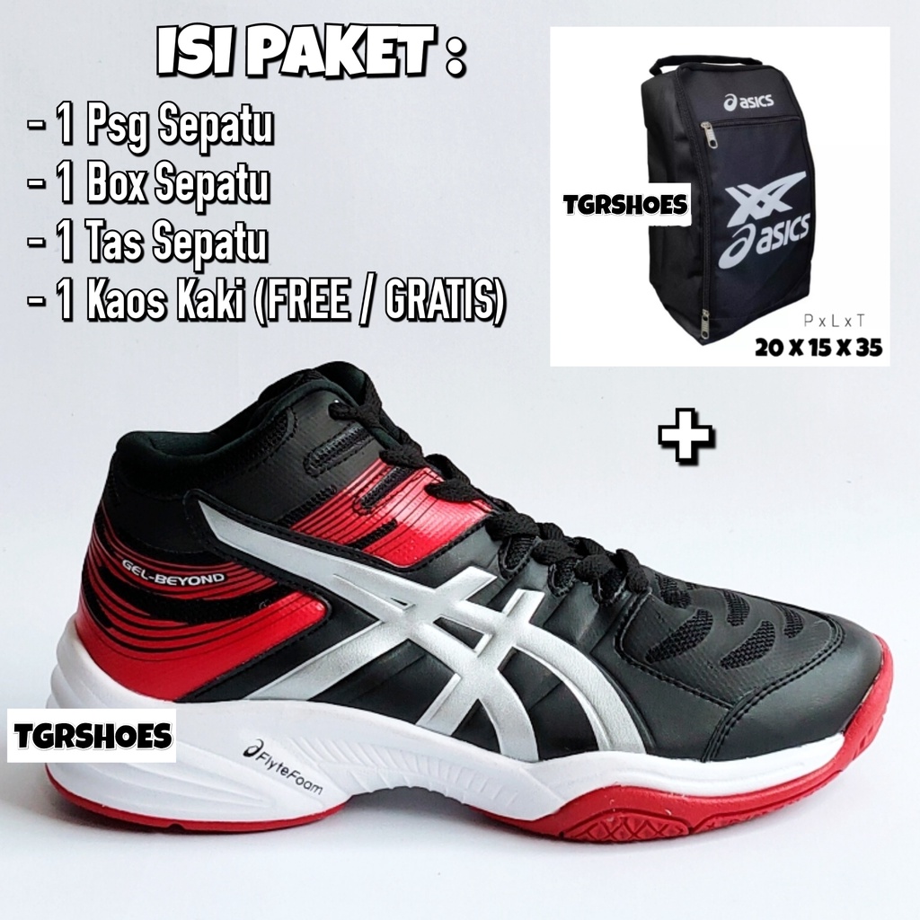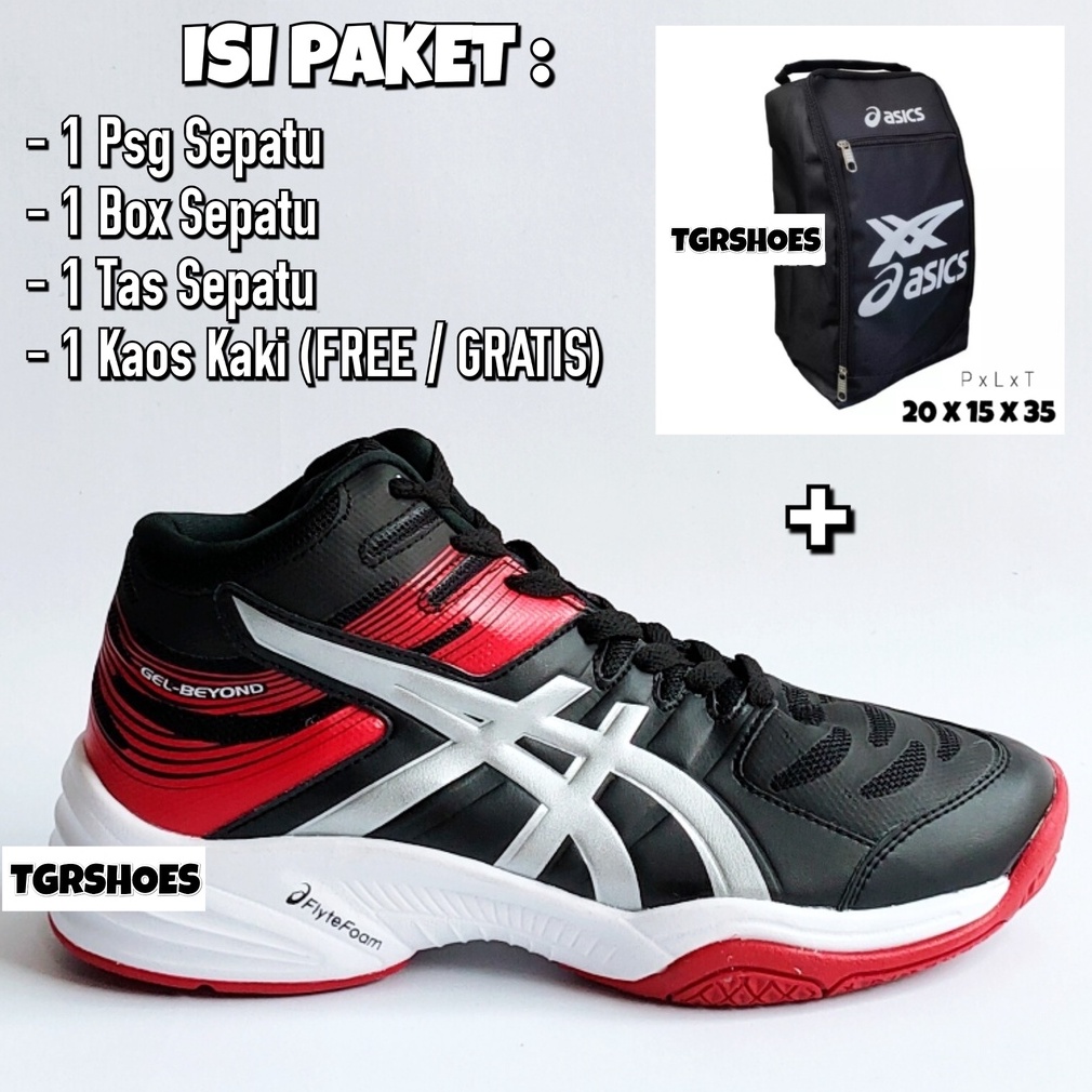 PAKET HEMAT SEPATU VOLI PRIA WANITA - BLACK RED / SEPATU VOLLY MURAH / SEPATU VOLLEY