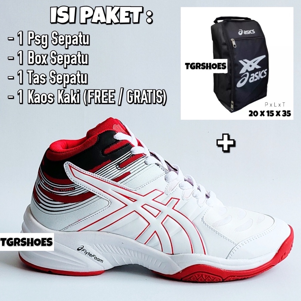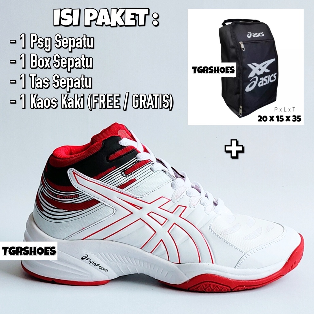 PAKET HEMAT SEPATU VOLI PRIA WANITA - WHITE RED / SEPATU VOLLY MURAH / SEPATU VOLLEY