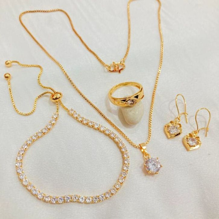 set perhiasan wanita dewasa motif permata gold titanium anti luntur dan anti karat