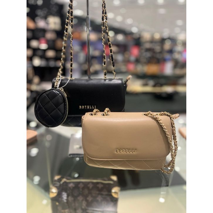 TAS FASHION MODIS KEKINIAN TAS SELEMPANG WANITA TERBARU TAS ROTELLI ART 146 SINTETIS HITAM /BEIGE FREE PAPERBAG READY