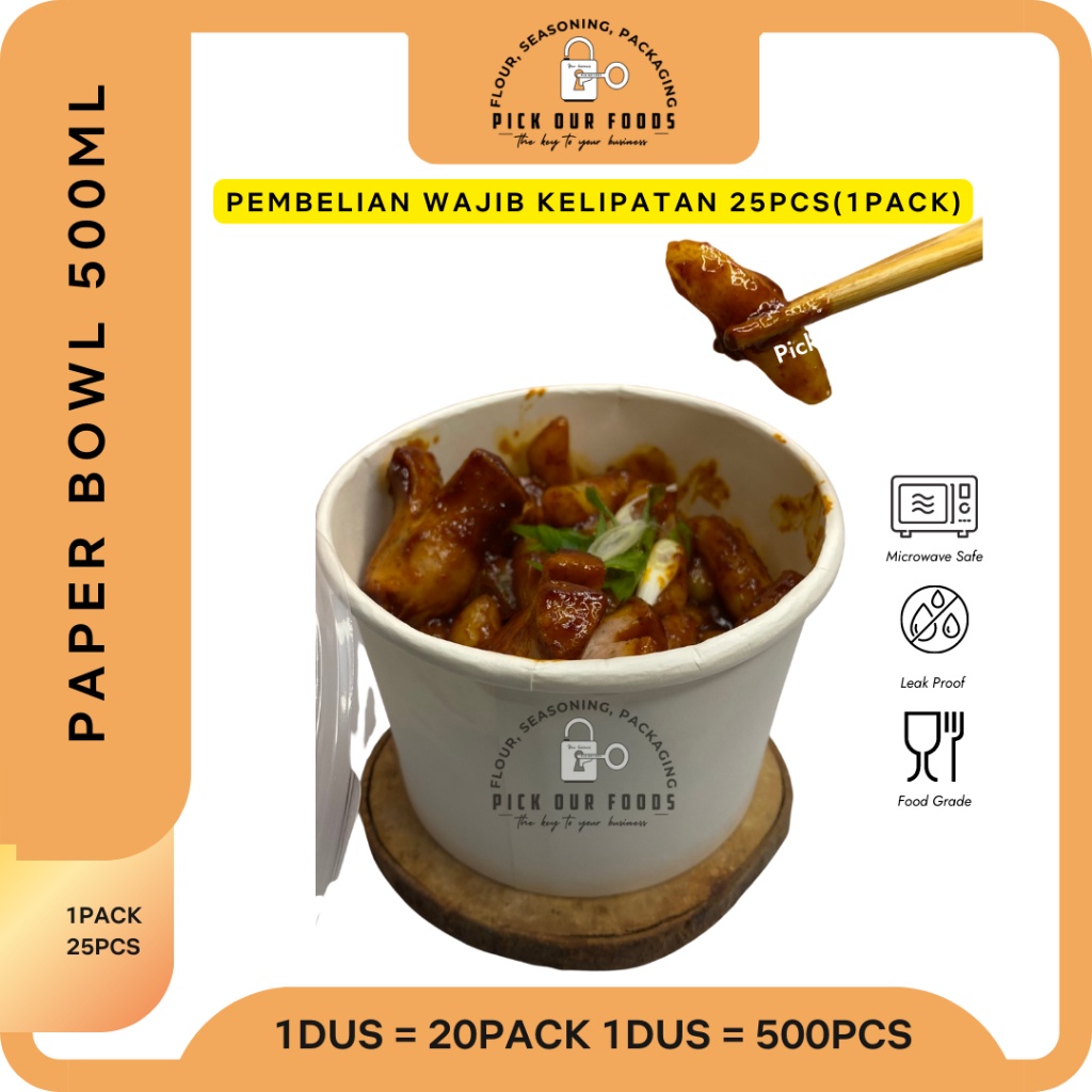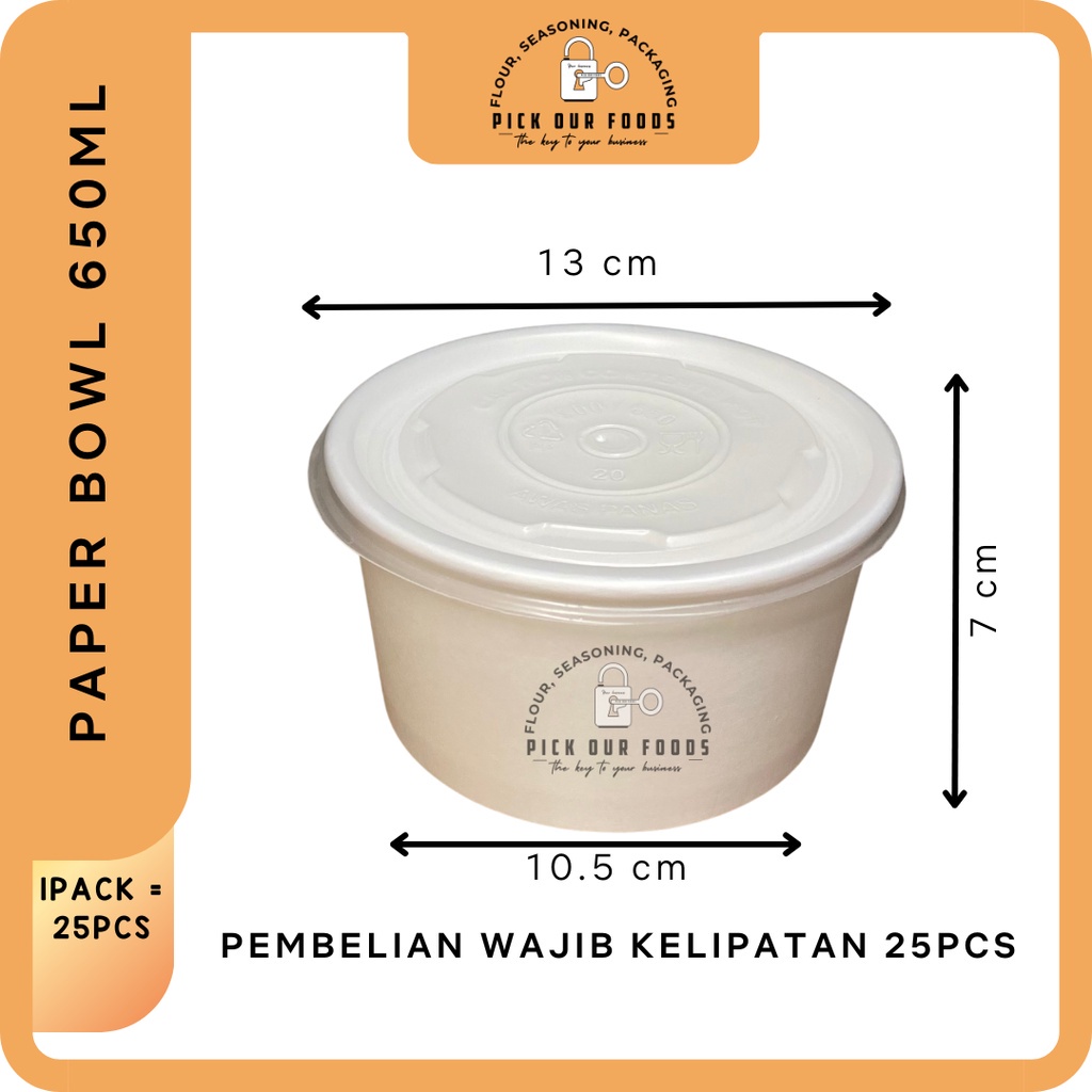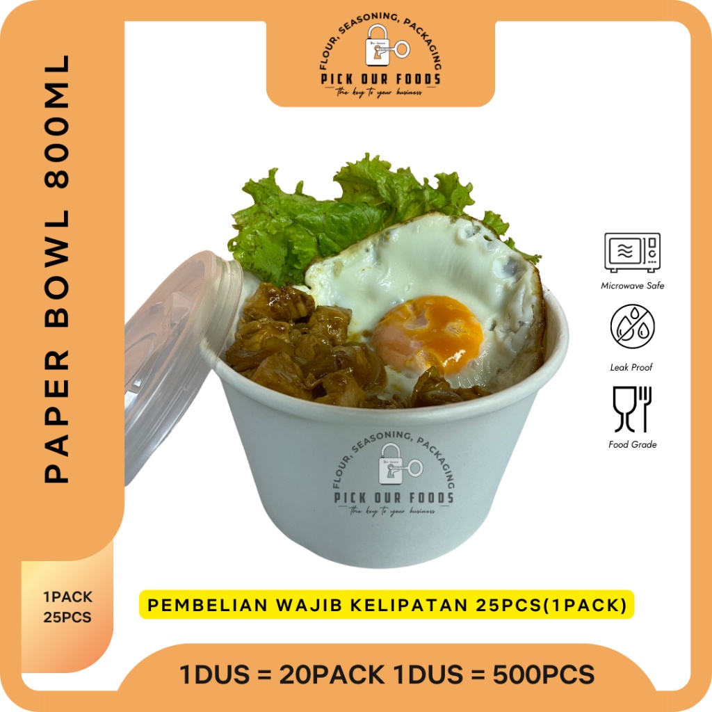 PAPER BOWL 360ML / 500 / 650 / 800 / RICE BOWL 800ML / 650 / 500 / 360 / MANGKOK KERTAS + LID (ISI 25 PCS)