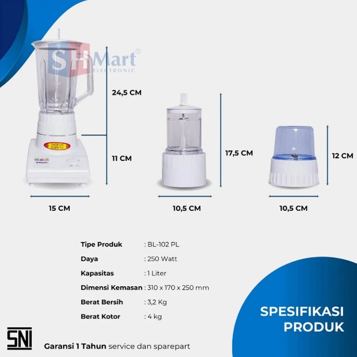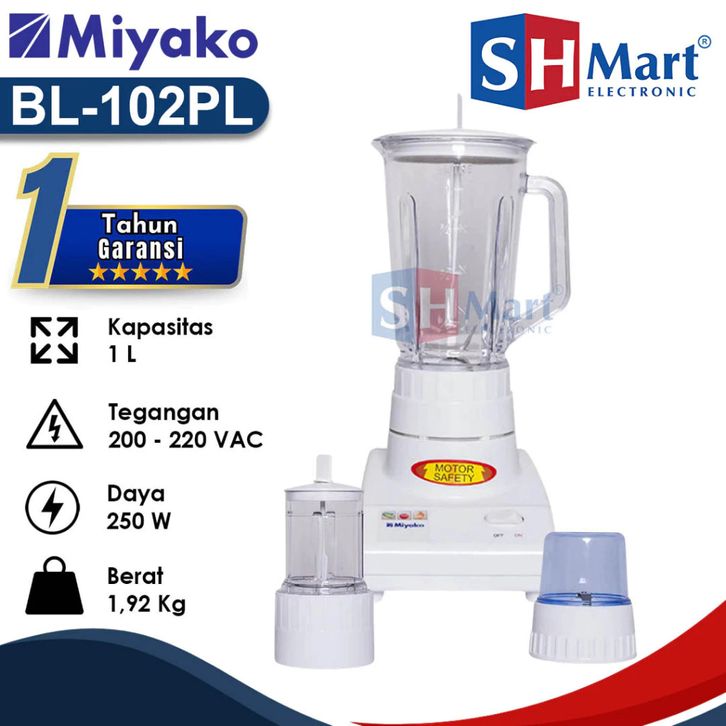 BLENDER PLASTIK MIYAKO 3 IN 1 KAPASITAS 1 LITER BL-102PL / BL102PL GARANSI RESMI