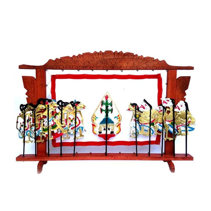 MINIATUR PAJANGAN RAK KERAJINAN MINIATUR 1 SET PAGELARAN WAYANG KULIT