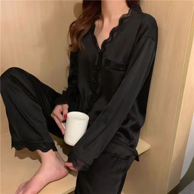 piyama/Atasan piyama lengan panjang tipis sutra es + set celana panjang