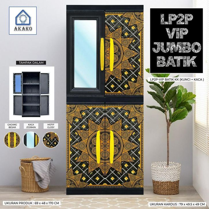 AKAKO - LEMARI PAKAIAN PLASTIK 2 PINTU JUMBO MOTIF BATIK FULL RAK /KODE: LP2P-VIP BATIK