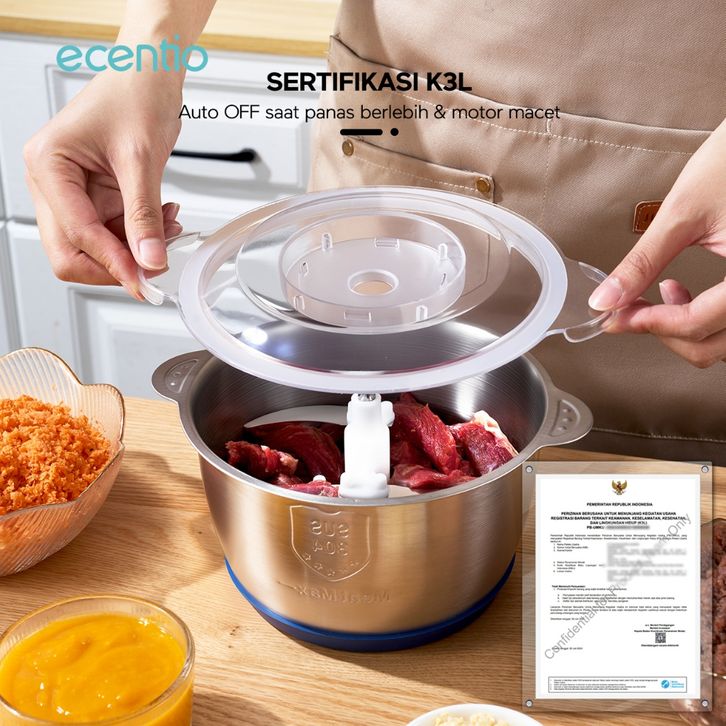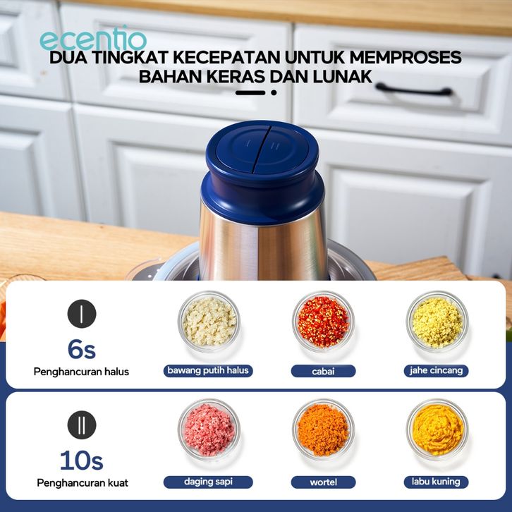 PENGGILING DAGING STAINLESS 2L FOOD CHOPPER 6 MATA PISAU MULTIFUNGSI FOOD PROCESSOR DAGING 250W 2 KECEPATAN FOOD GRADE