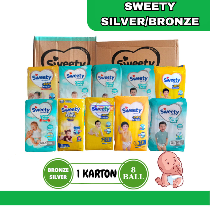 POPOK BAYI SWEETY SILVER BRONZE PANTS BARU LAHIR NEW BORN MURAH XXL XL L M S 1 DUS KARTON PEMPES PEMPERS