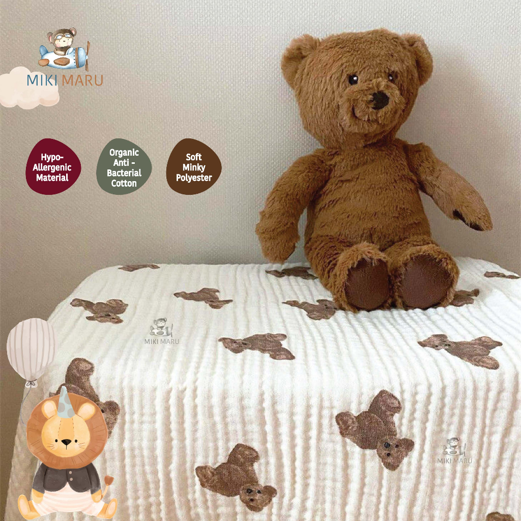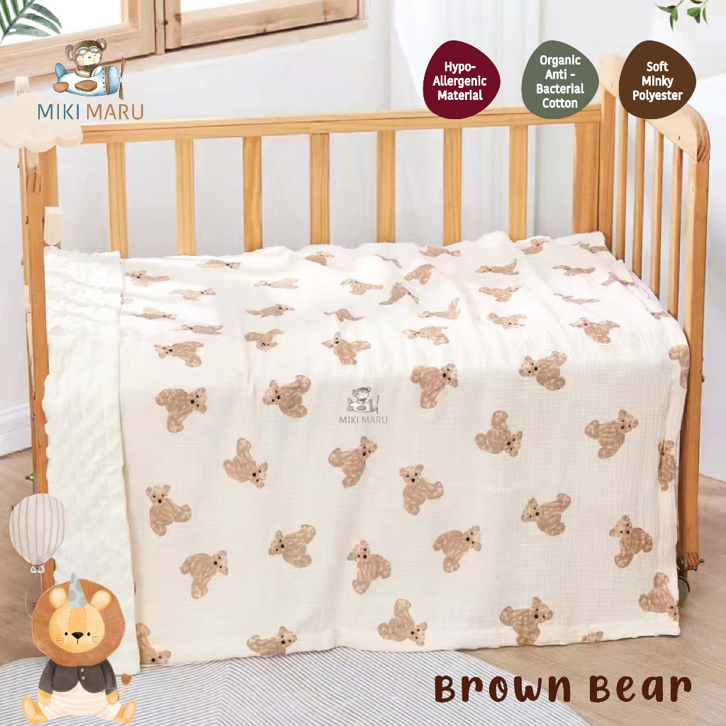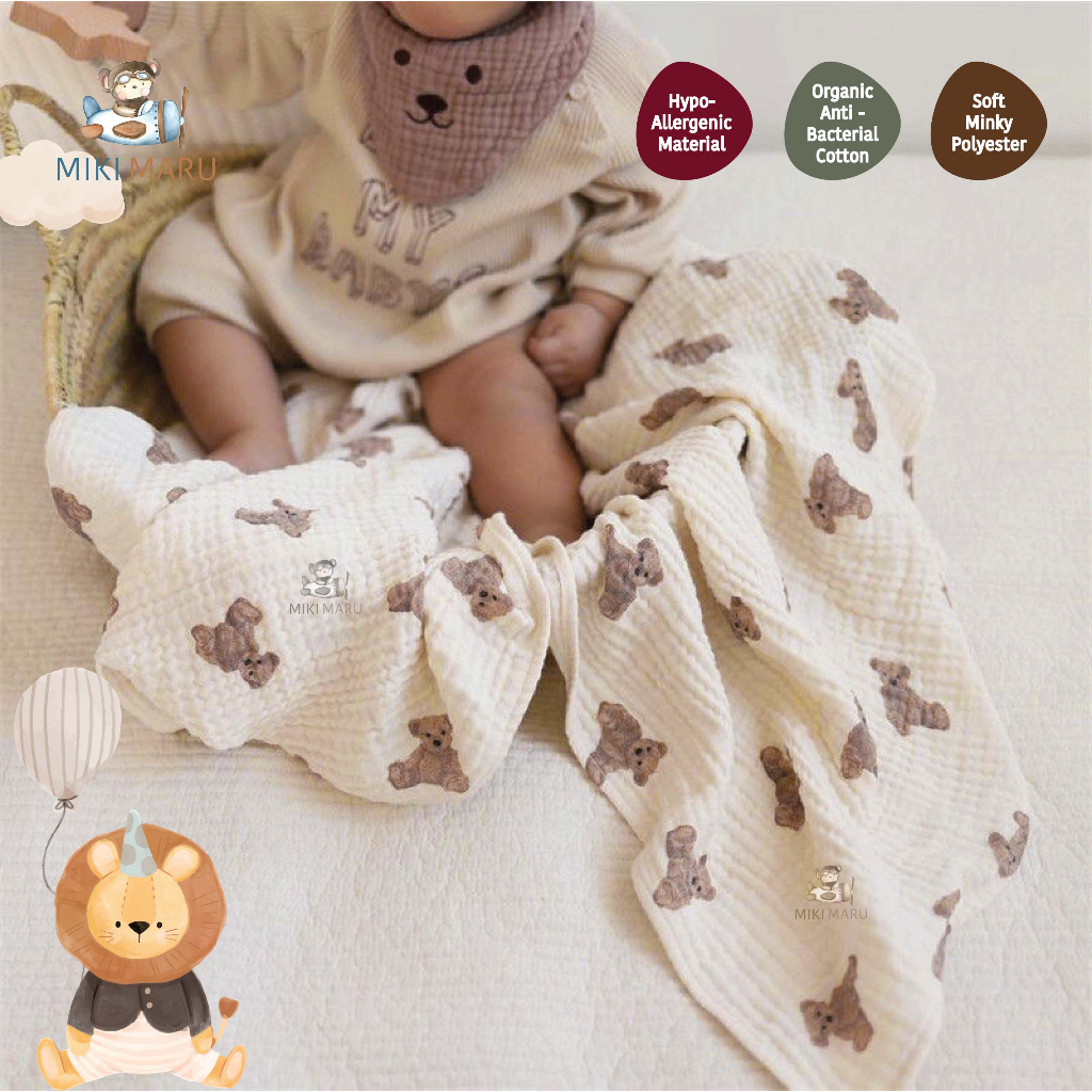 MIKIMARU SELIMUT BAYI LEMBUT HALUS | BABY BLANKET MINKY MUSLIN | ORGANIC COTTON BANY BLANKET | SELIMUT KATUN HALUS B