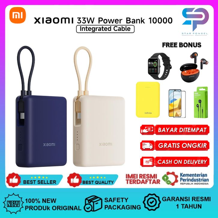[Official Store ✔] Xiaomi 33W Power Bank 10000mAh (Integrated Cable) | Kabel daya terintegrasi | Pengisian daya cepat