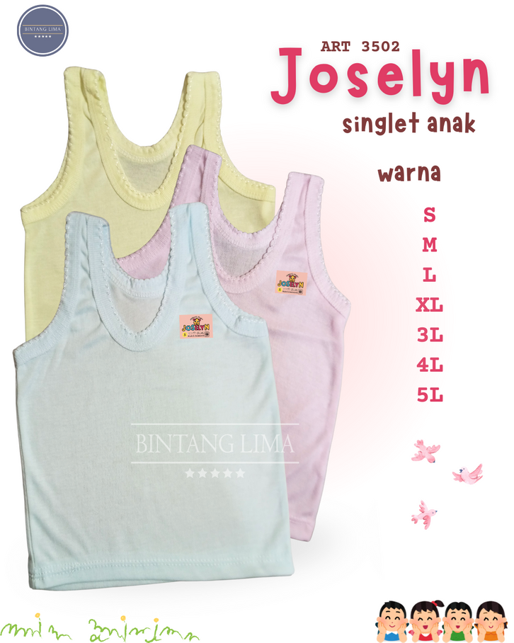 Kaos Dalam anak JOSELYN warna | Singlet Anak | Pakaian dalam anak | Bahan Lembut | Best Seller