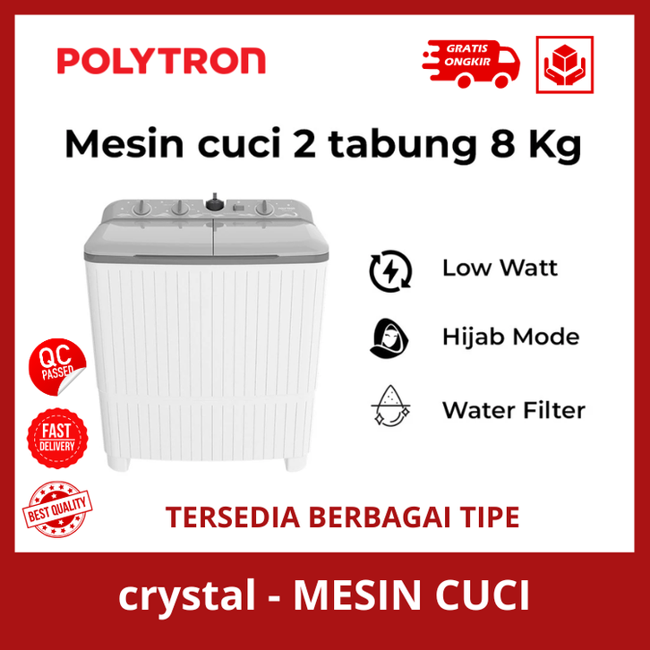 MESIN CUCI POLYTRON 2 TABUNG 8KG GIANT SERIES HIJAB PRIMADONA 8 KG PWM 8076Y 8076G 8073P 8073B 8072B MURAH TANPA DP