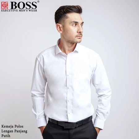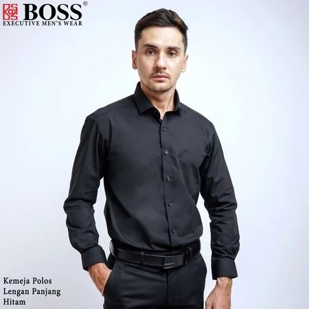 Kemeja Polos Pria Lengan Panjang BOSS Hitam dan Putih