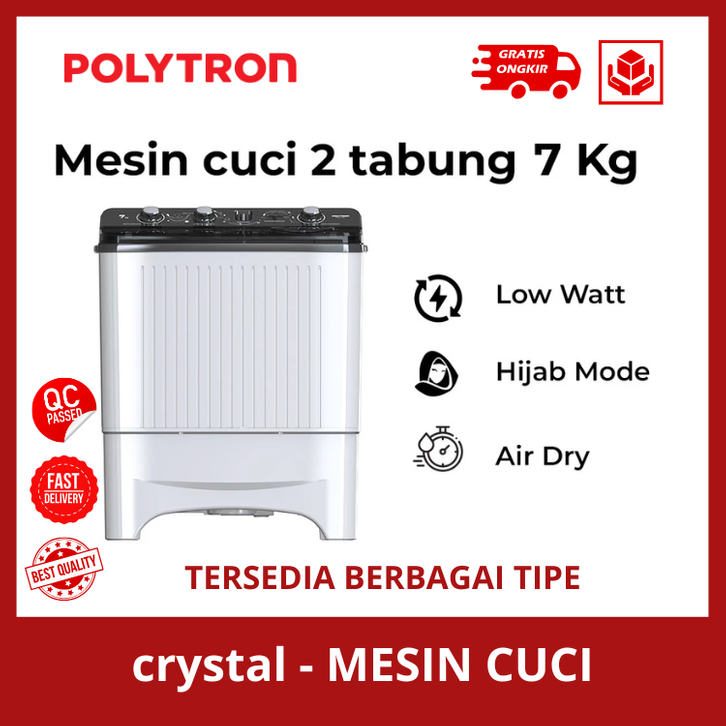 MESIN CUCI POLYTRON 2 TABUNG 7KG PRIMADONA GIANT SERIES HIJAB 7 KG PWM 7081Y 7076Y 7072N 7073B 7076G 7072B MURAH