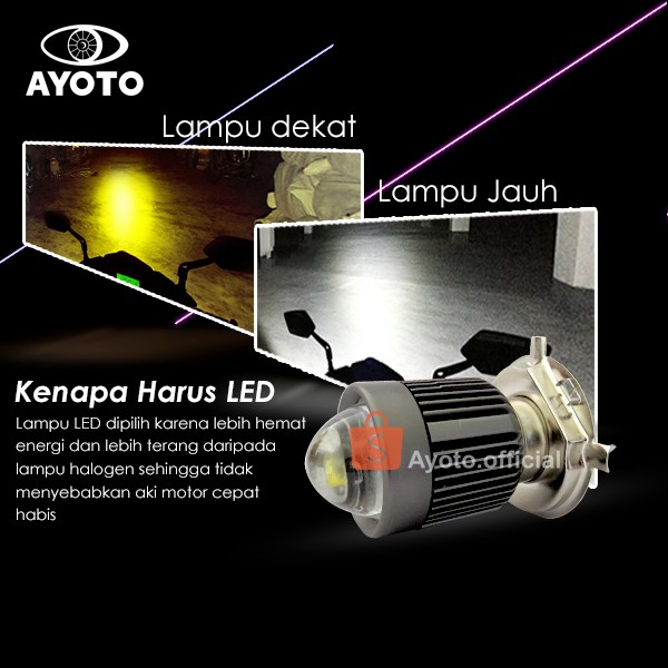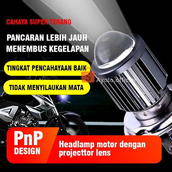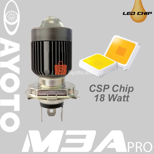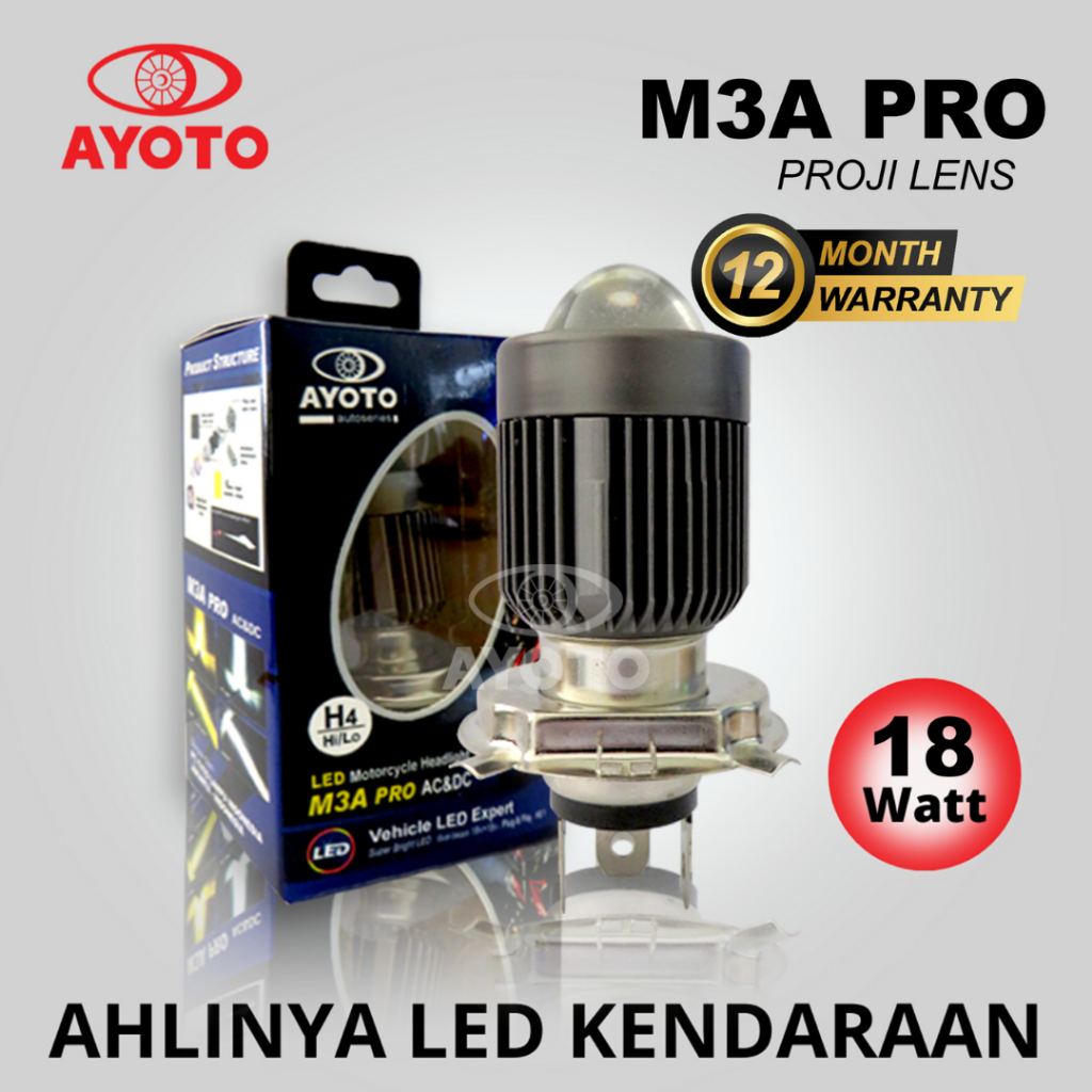 Lampu LED Motor Depan Projie Socket H4 Vixion AYOTO M3A PRO Hi/Lo 2Warna Arus AC DC PNP Watt 18+18