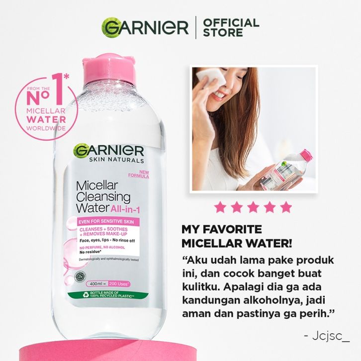 Garnier Micellar Cleansing Water Pink 125ml - Pembersih Wajah & Make up Untuk Kulit Sensitif, menghapus kotoran, debu