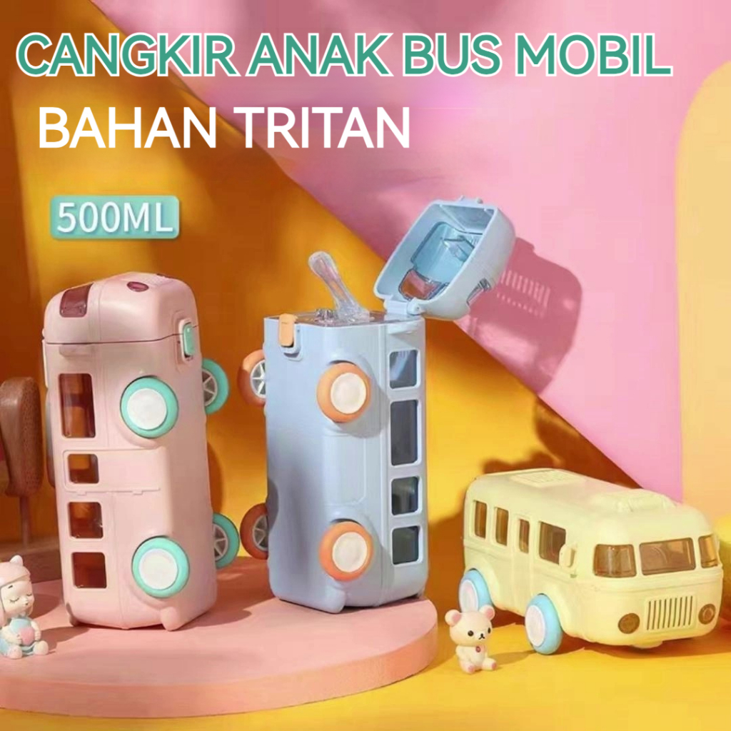 BOTOL AIR MINUM BENTUK BUS DENGAN SEDOTAN TRITAN BOTOL MAINAN ANAK CANGKIR LUCU