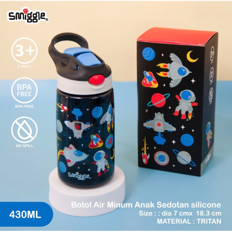 SMIGGLE JUNIOR BOTOL AIR MINUM SEDOTAN SILICONE 430ML BPA FREE 2182-2171