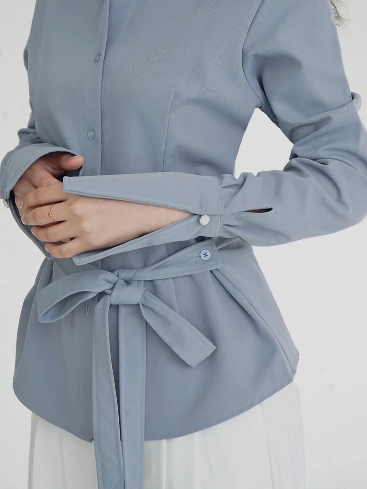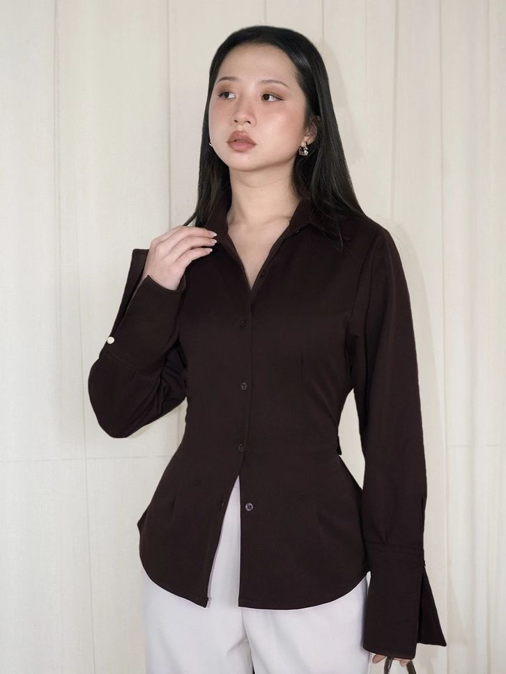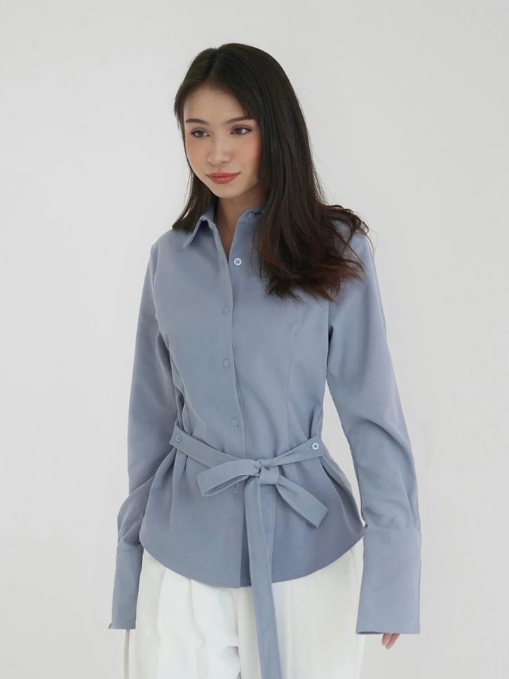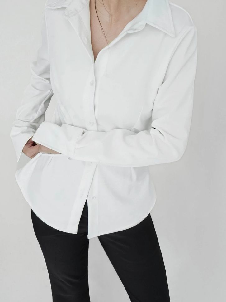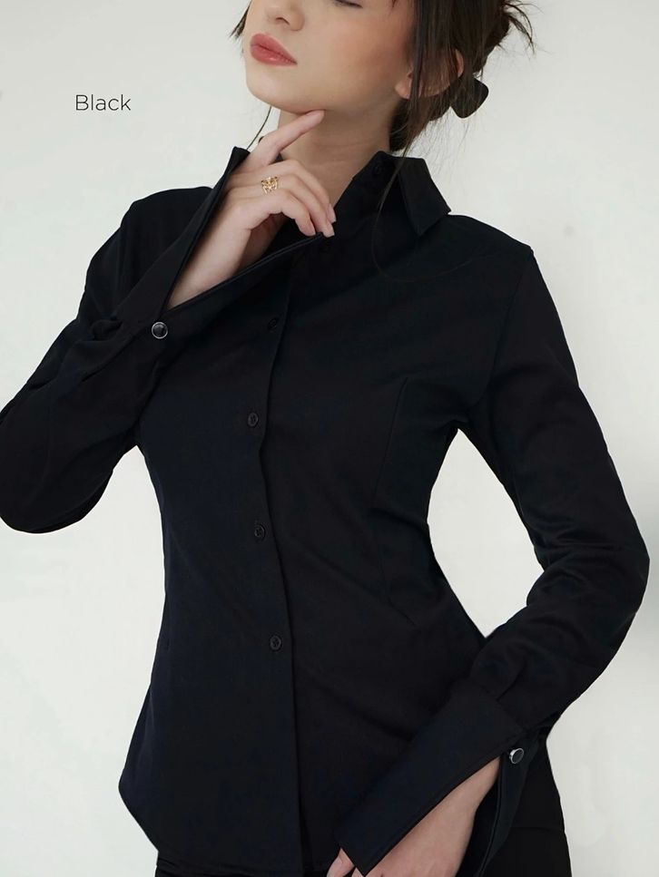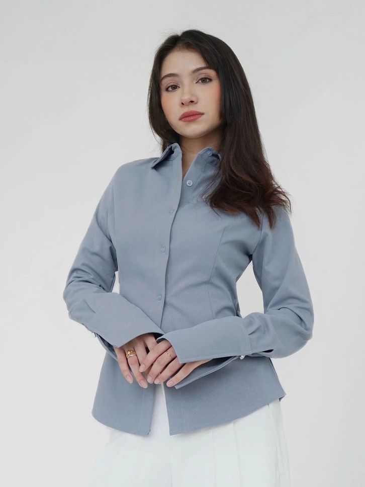 Kemeja Kerja Wanita Dewasa Polos Kemeja Bahan Katun Semi Wool Slim fitted Yara Shirt Lengan Panjang Press Body Terbaru